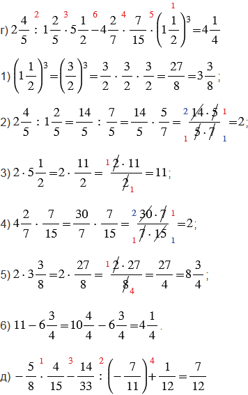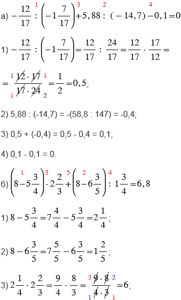 Красные числа, стоящие сверху над действиями, показывают в каком порядке нужно выполнять действия.