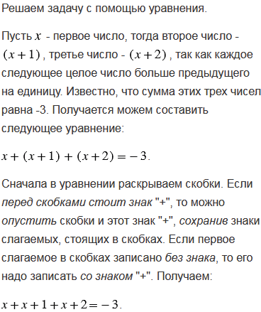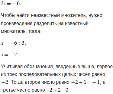 Найдите три последовательных целых числа, если их сумма равна -3.