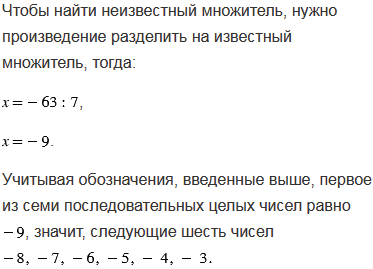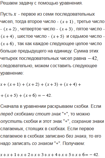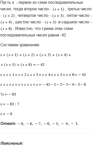 Найдите семь последовательных целых чисел, если их сумма равна -42.
