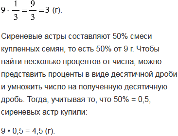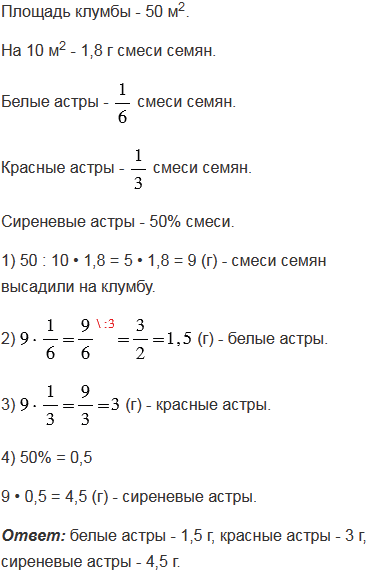 красных астр и 50% сиреневых. Найдите сколько граммов каждого вида астр купили, если на 10 м2 высевали 1,8 г смеси семян.