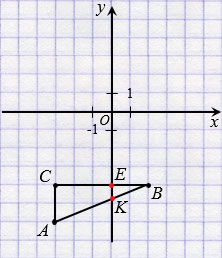 Треугольник АВС пересекает ось в двух точках Е(0; -4) и K(0; -4,8).