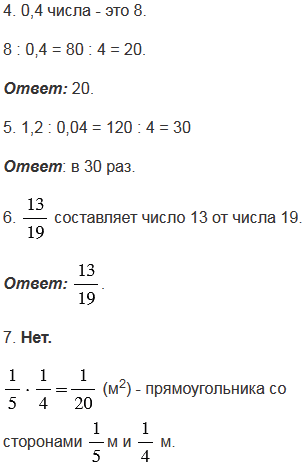 7. Площадь прямоугольника со сторонами одна пятая метра и одна четвертая метра равна одной десятой квадратного метра.