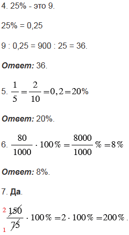 4. Двадцать пять процентов некоторого числа равны девяти. Найдите это число.
