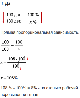 8. Если рабочий вместо предусмотренных планом ста деталей изготовит сто восемь, значит, он перевыполнит план на восемь процентов.