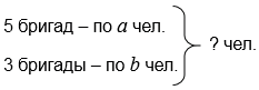 На стройке работало 5 бригад, по человек в каждой, и 3 бригады, по человек в каждой. Сколько человек работало на стройке? Вычислите при = 25 и = 32.