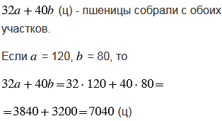 га. С каждого гектара первого участка собрали 32 ц пшеницы, а с каждого гектара второго участка собрали 40 ц. Сколько пшеницы собрали с обоих участков? Вычислите при