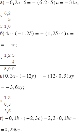 Упростите выражение, используя переместительное и сочетательное свойства умножения: