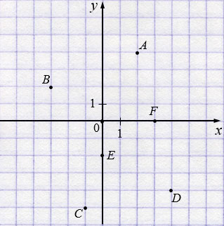 На координатной плоскости (рис. 6) отмечены точки А, В, С, D, Е и F. Найдите их координаты.