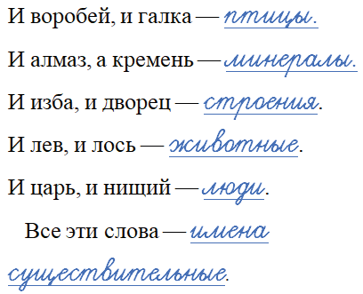 Прочитайте группы слова. Объедините их по образцу, дописав подходящие по смыслу слова. Подумайте, можно ли ещё все слова сразу объединить в большую группу слов, отвечающих на вопросы кто? что?. Допишите последнее предложение.