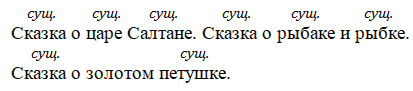 Прочитайте названия сказок А. С. Пушкина. Слова какой части речи занимают в них главное место? Обозначьте их. Допишите предложение.