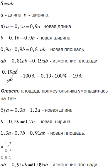 б) его длину увеличить на 30%,а ширину уменьшить на 30%?