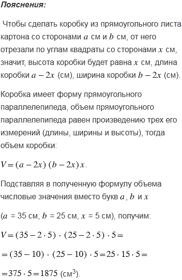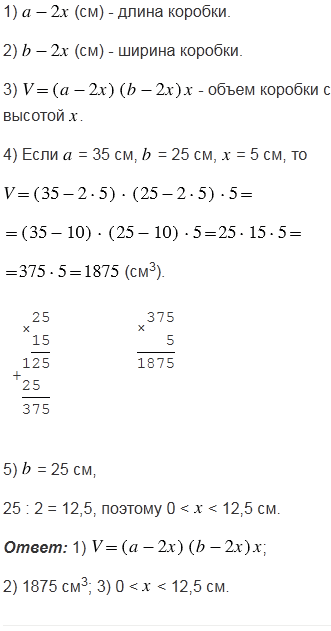 см (рис. 8). Из оставшейся части сделали открытую коробку. Запишите формулу для вычисления объема