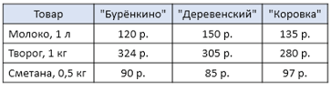 Ответ: стоимость покупки будет наименьшей в магазине "Бурёнкино" и равна 689,28 р.
