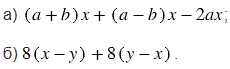 Чтобы найти значение выражения наиболее простым способом, используем распределительное свойство умножения, то есть выносим одинаковый множитель за скобки и сначала выполняем вычисления в скобках. В каждом выражении это свойство применяем дважды.