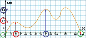 Если \(t\) = 20 мин, то \(s\) = 4,2 км.