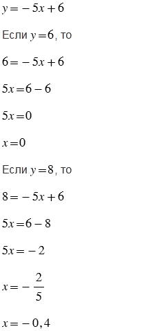 Формула \(y=-5x+6\) задает некоторую функцию При каком значении аргумента значение функции равно 6? 8? 100?
