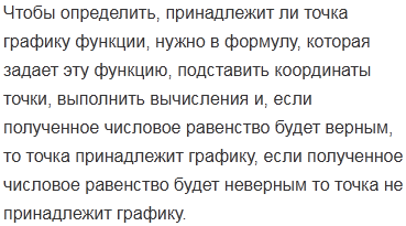 ? Укажите еще две точки, одна из которых принадлежит этому графику, а другая нет.
