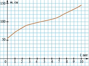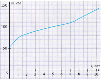 Рост ребенка \(m\) в определенном возрасте \(l\) определяем аналогично пункту а).