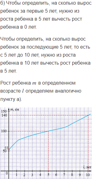 б) Чтобы определить, на сколько вырос ребенок за первые 5 лет, нужно из роста ребенка в 5 лет вычесть рост ребенка в 0 лет.