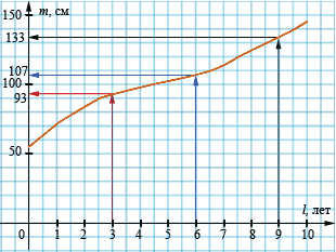 а) каков был рост ребенка в 3 года; в 6 лет; в 9 лет;