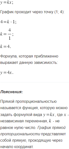 На координатной плоскости отметьте эти точки и покажите с помощью линейки, что они расположены почти на прямой. Составьте формулу, которая приближенно выражает зависимость