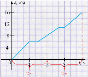 д) На первые 8 км было затрачено 2 ч, на последующие 8 км - 2 ч.