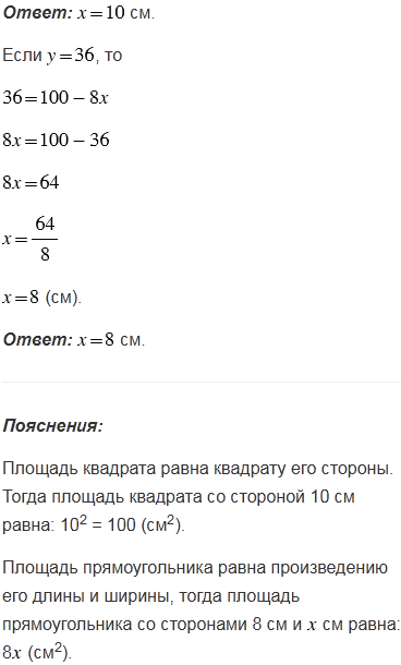 см (рис. 66). Обозначив площадь оставшейся части квадрата (в квадратных сантиметрах) буквой