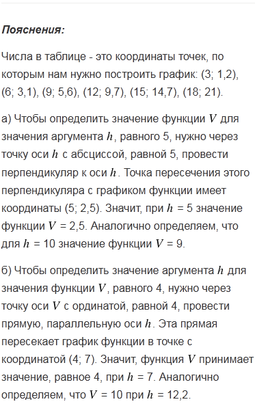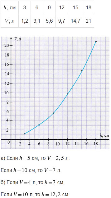 Изучая зависимость объема жидкости в сосуде от высоты ее уровня, получили таблицу: