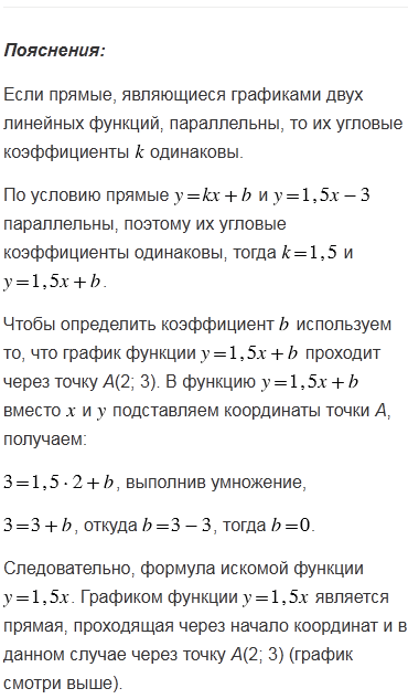 Задайте формулой линейную функцию, графиком которой служит прямая, проходящая через точку А(2; 3) и параллельная графику
