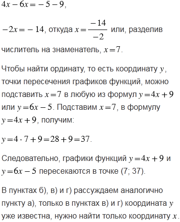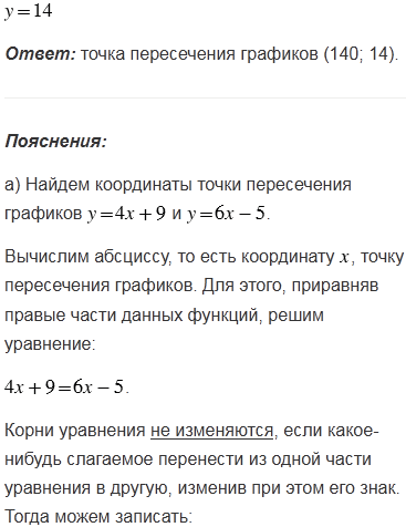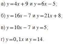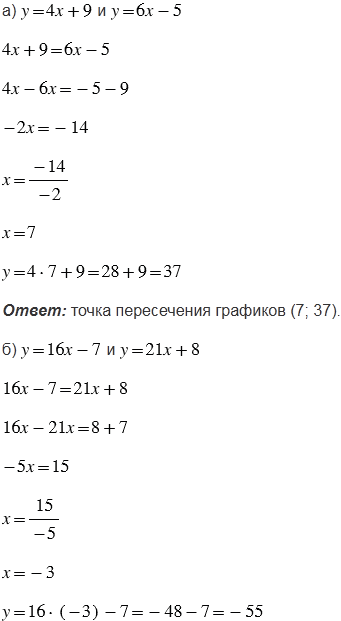 Не выполняя построения, найдите координаты точки пересечения графиков линейных функций: