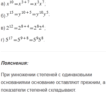 Представьте степень в виде произведения двух степеней с тем же основанием каким-нибудь способом: