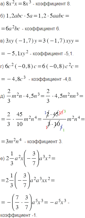 Представьте одночлен в стандартном виде и назовите его коэффициент: