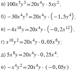 Представьте выражение в виде произведения двух одночленов стандартного вида, один из которых равен :