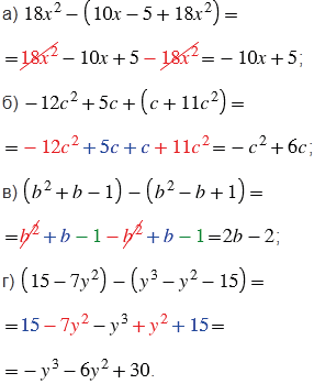 Чтобы преобразовать выражения в многочлены стандартного вида, нужно раскрыть скобки и привести подобные слагаемые (в решении выделены одинаковым цветом).