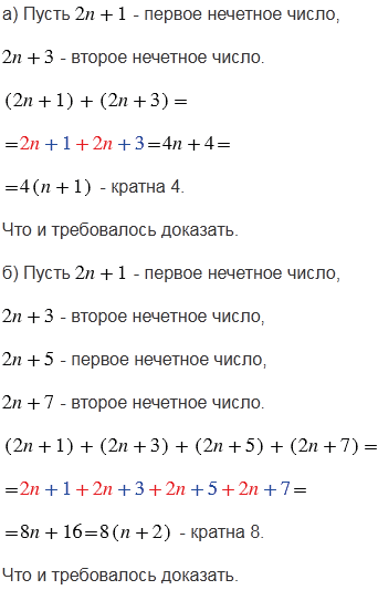 а) сумма двух последовательных нечетных чисел кратна 4;