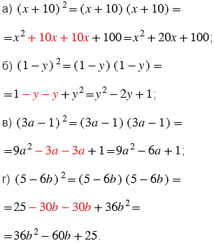 Учитывая определение степени, представляем многочлен данный в квадрате в виде произведения двух таких многочленов и выполняем умножение многочлена на многочлен.