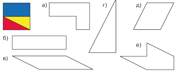 8. Нарисуй на клетчатой бумаге квадрат со стороной 3 см. Раскрась его, как показано на рисунке. Вырежи части квадрата и сложи фигуры.