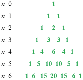 Для определения коэффициентов получаемого многочлена, используют треугольник Паскаля. В треугольнике Паскаля "боковые стороны" состоят из единиц, а каждое из остальных чисел равно сумме двух чисел, записанных над ним.
