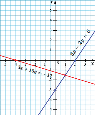 г) \(\begin{cases} 3x - 2y = 6, \\ 3x + 10y = -12. \end{cases} \)