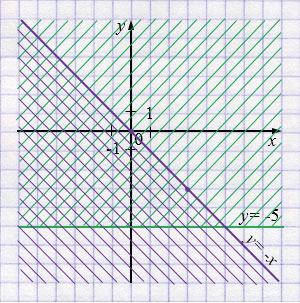 а) \(\displaystyle \begin{cases}y \le -x,\\y \ge -5\end{cases}\)