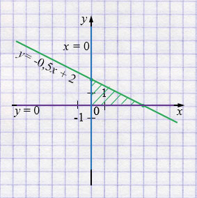 Затем прямая \(y=-0,5x+2\) ограничивает область сверху.