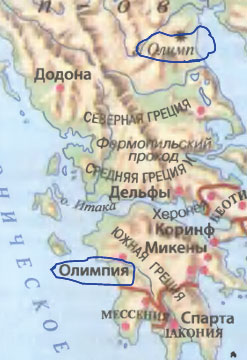 Поработайте с картой (см. с. 127). Найдите два похожих названия - Олимп и Олимпия. В какой части Греции находится Олимпия? В какой - Олимп? Где проводились знаменитые Игры?