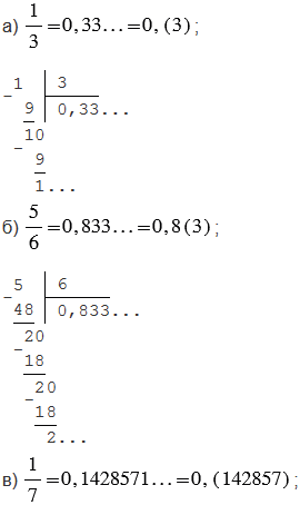 6. Бесконечные десятичные дроби (периодические дроби).
