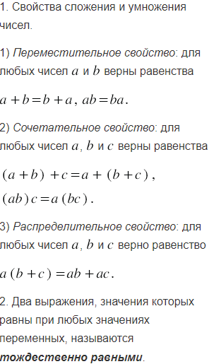 1. Сформулируйте переместительное и сочетательное свойство сложения и умножения, распределительное свойство умножения.