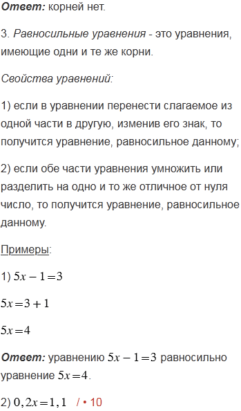 3. Какие уравнения называются равносильными? Сформулируйте свойства уравнений. Приведите пример уравнения, равносильного уравнению: ; ; .