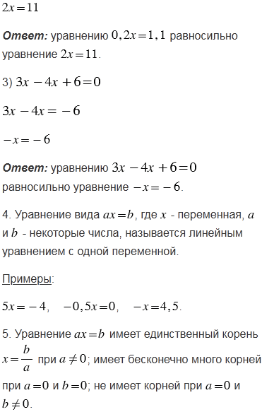 4. Дайте определение линейного уравнения с одной переменной. Приведите примеры.