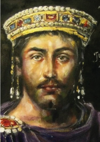 Флавий Пётр Савватий Юстиниан (более известный как Юстиниан I или Юстиниан Великий; 482-565) - византийский император. Сам Юстиниан в указах называл себя Цезарем Флавием Юстинианом Аламанским, Готским, Франкским, Германским, Антским, Аланским, Вандальским, Африканским, так как при нём были присоединены многие земли бывшей Западной Римской империи, в частности, упразднены королевство вандалов и аланов в Африке, королевство остготов в Италии, присоединена часть земель королевства вестготов в Испании.