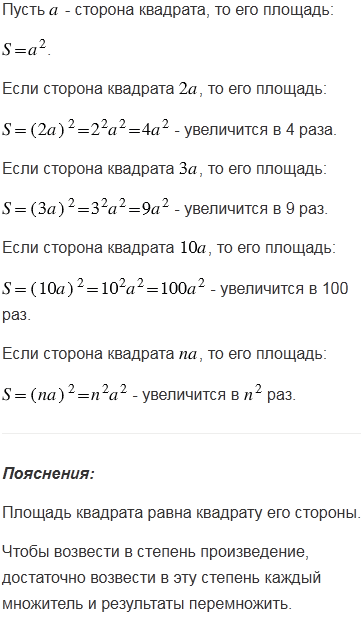 Как изменится площадь квадрата, если его сторону увеличить в 2 раза; в 3 раза; в 10 раз; в раз?