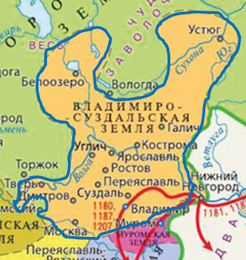 2. Судоходные реки, протекавшие на территории Владимиро-Суздальской земли: Волга, Кострома, Клязьма, Ока, Сухона, Суда, Унжа. По указанным рекам можно было попасть в Чёрное море. Волок располагался в районе города Волок-Ламский. В Балтийское море можно было попасть по Волге. от Волги волоком от Твери до Ржева, затем через Западную Двину в Балтийское море.