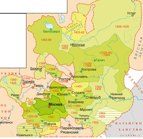 Часть карты скопирована с сайта https://upload.wikimedia.org/wikipedia/commons/7/73/Muscovy_1300-1462.png